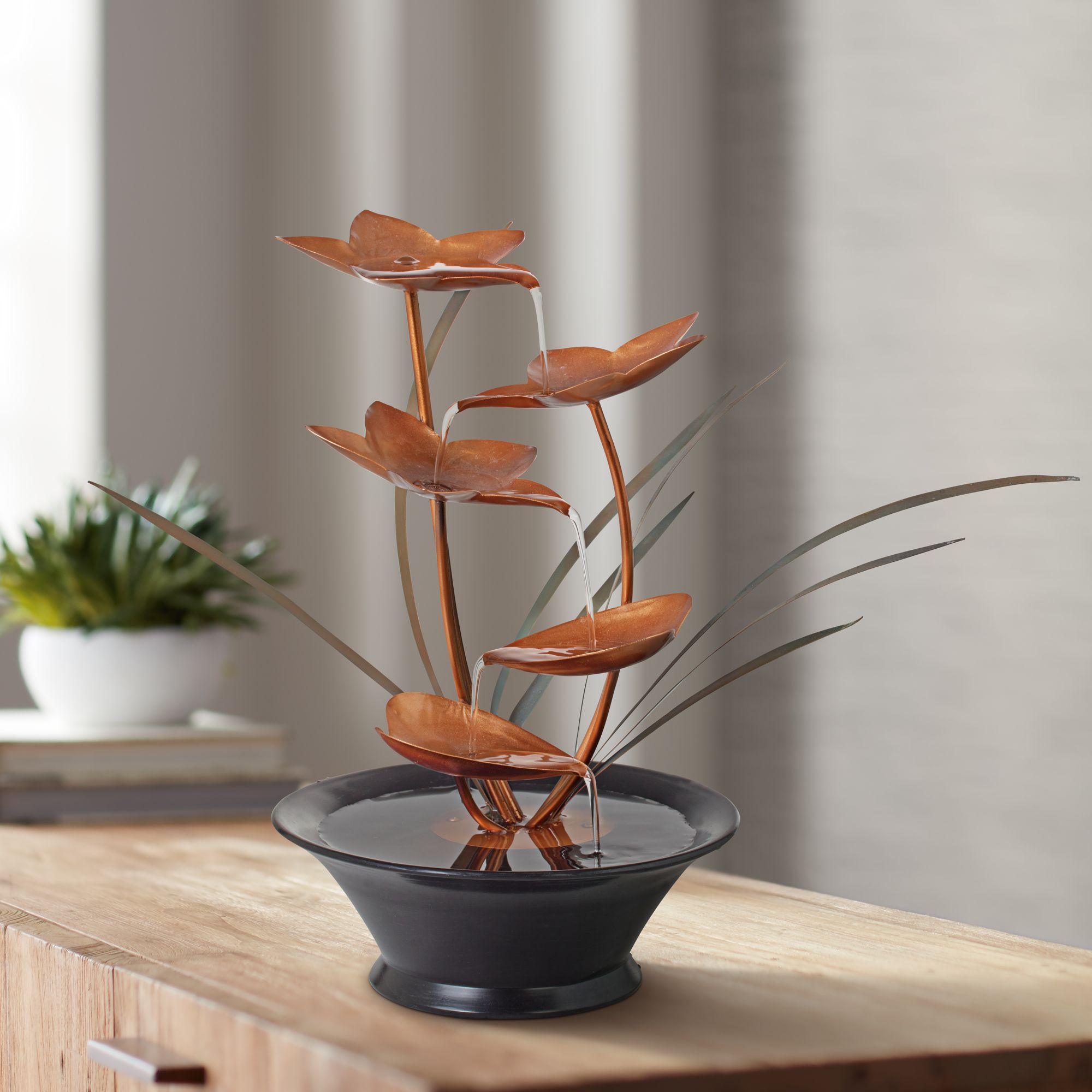 Each fountain features 6 metallic blossoms and 2 leaves that are painted copper. The water lily copper fountain, what could be more appropriate? Water cascades down from flower to flower for a soothing effect. Welcome your guests with this charming copper outdoor fountain featuring delicate flower petals gently dripping water onto garden leaves. Find many great new & used options and get the best deals for sunnydaze copper flower petals with five tier antique 3 tier fountain bird bath with pump water ornament garden yard outdoor.